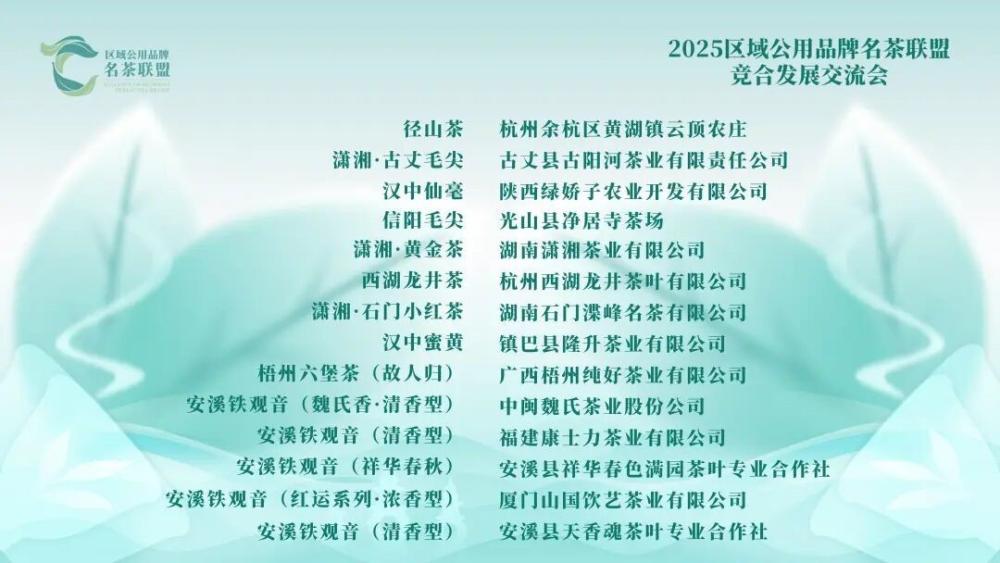 2025年10月30日,由中国国际茶文化研究会茶业品牌建设专委会主办,杭州市西湖龙井茶管理协会、杭州西湖风景名胜区管委会、《茶博览》杂志社联合承办的“2025区域公用品牌名茶联盟竞合发展交流会”在中国茶叶博物馆成功举办。来自全国22大区域公用名茶品牌的代表、茶界专家学者…