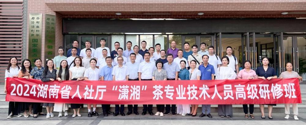 9月18至22日,由湖南省人力资源和社会保障厅(以下简称“人社厅”)、湖南省茶叶品牌建设促进会(以下简称“促进会”)主办的2024“潇湘”茶专业技术人员高级研修班(以下简称“研修班”)在安徽成功举办。研修班深入走访了合肥市、六安市、池州市和黄山市的多家茶叶企业和科研教学单位,共计50名学员参加本次研修并圆满结业。国务院特殊津贴专家、茶学教育部重点实验室主任、湖南农业大学教授、博士生导师黄建安,中国茶叶学会副理事长、湖南省茶叶学会理事长、湖南农业大学教授、博士生导师萧力争,湖南省政府特殊津贴高技能人才、湖南农业大学教授朱海燕与国务院特殊津贴专家、促进会副会长兼秘书长尹钟等领导专家带队学习,湖南省人力资源和社会保障厅专业技术人员管理处副处长龙涛出席结业典礼。湖南省人力资源和社会保障厅、湖南省发展与改革委员会、安徽农业大学、安徽捷迅光电技术有限公司以及安徽六安瓜片茶业股份有限公司、安徽国润茶业有限公司、黄山毛峰茶业集团等相关单位给予本次活动大力支持。