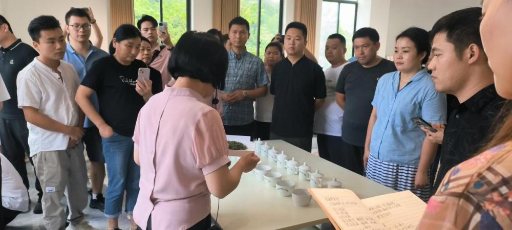 当日下午,黄建安教授带领大家在徽六公司开展了别开生面的茶叶审评实践,对会员单位与徽六公司提供的共计32个茶样进行现场审评,一一点评产品的优点与不足,敦促湖南茶企在加工技术水平上进一步提升。