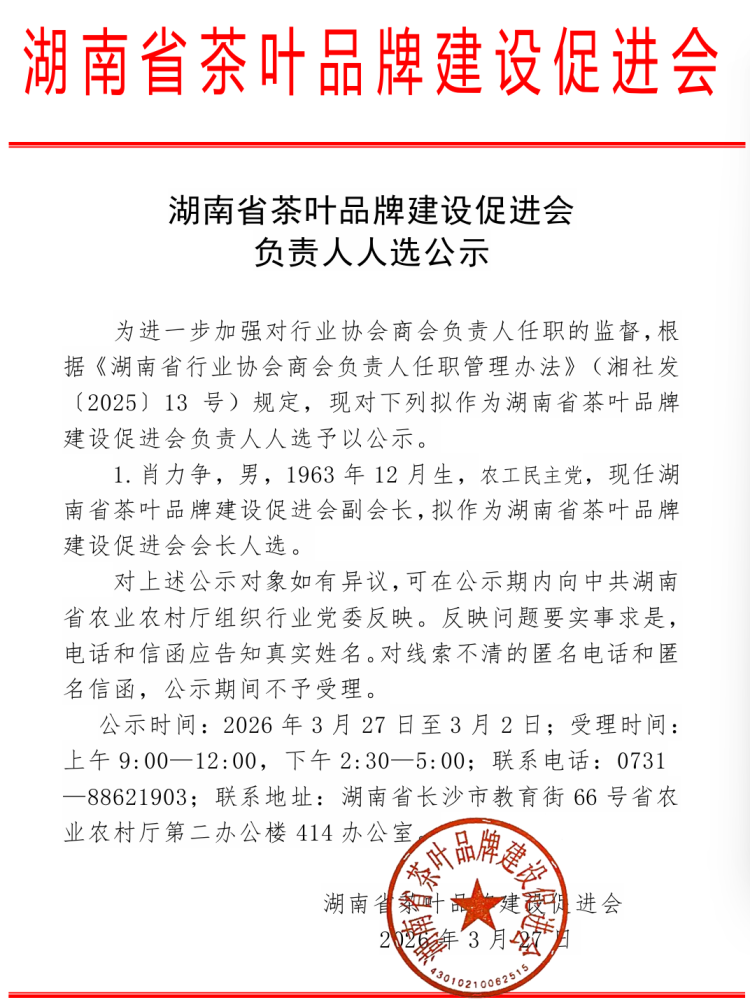 关于2025年度“湘产专场”潇湘茶产业高级职称专场评审结果的公示