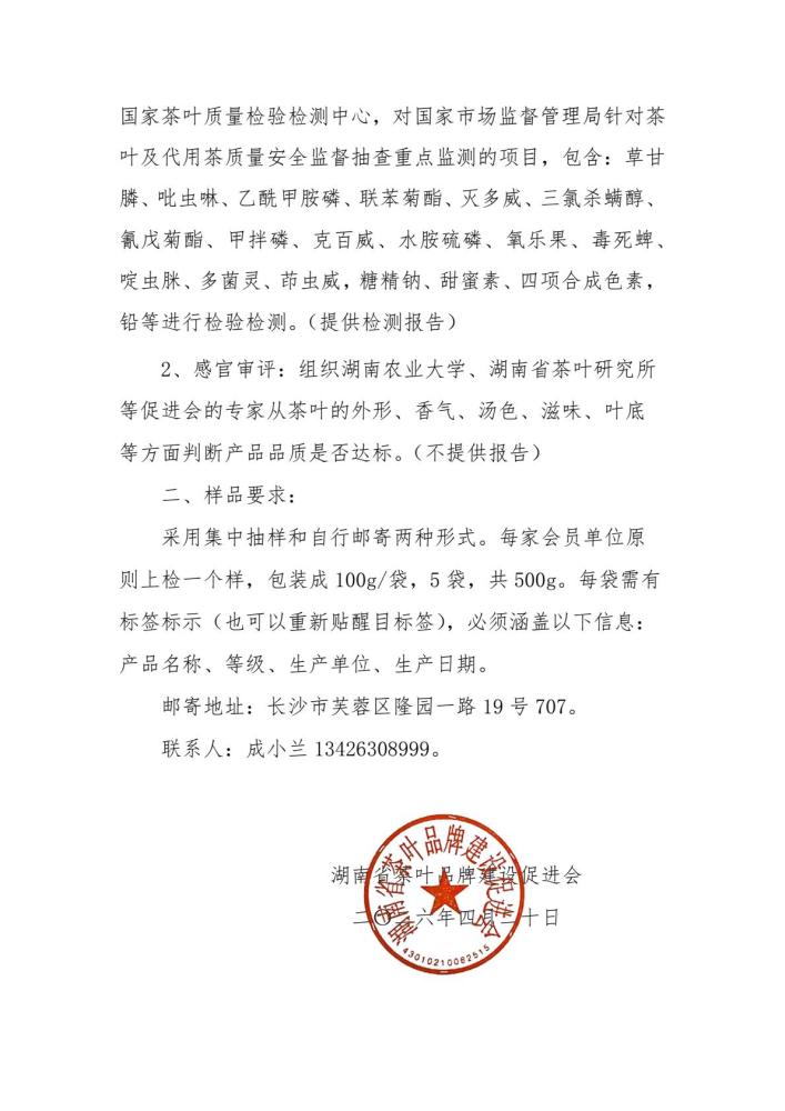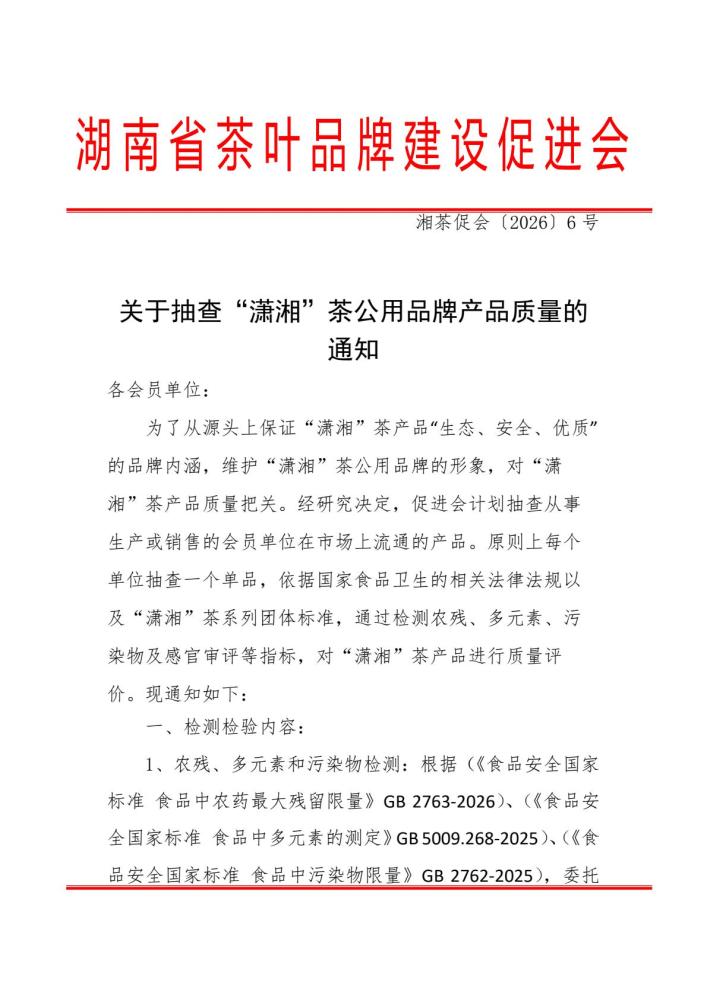关于抽查“潇湘”茶公用品牌产品质量的通知